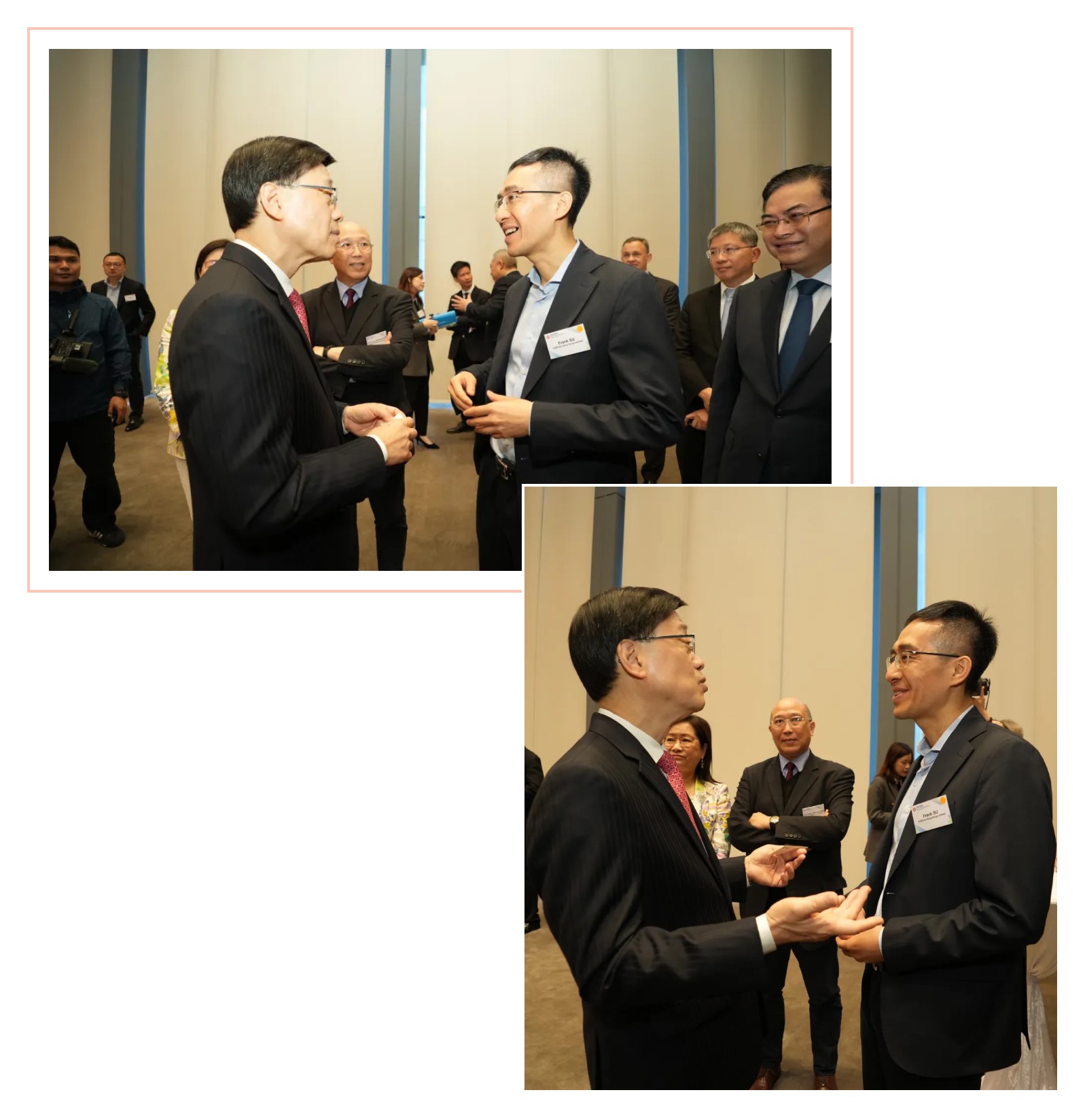 ▲行政長(zhǎng)官李家超先生與天科雅董事長(zhǎng)蘇震波先生交流
