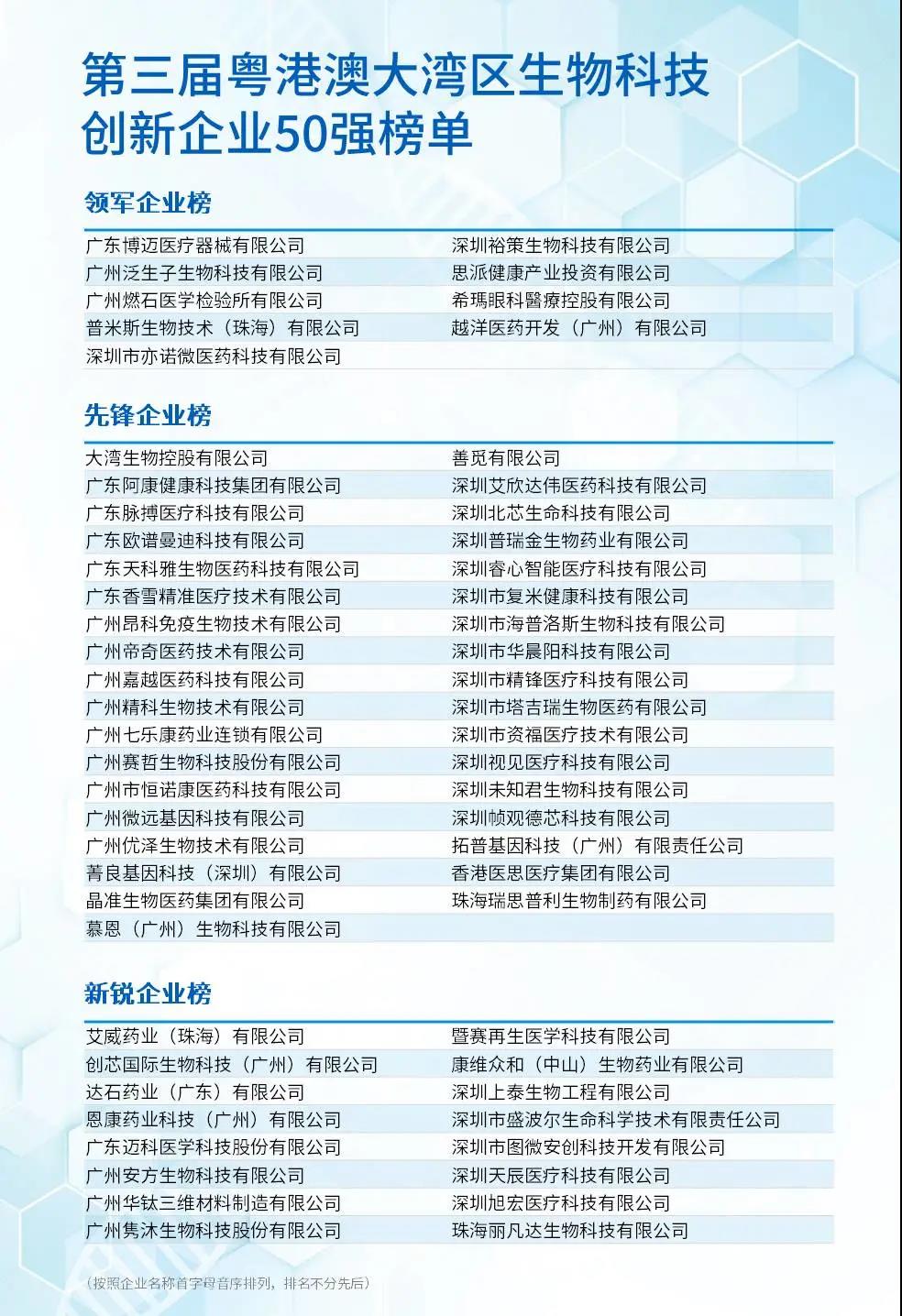 由中創(chuàng)產(chǎn)業(yè)研究院、畢馬威中國主辦,廣東醫(yī)谷承辦的第三屆粵港澳大灣區(qū)生物科技創(chuàng)新企業(yè)50強頒獎典禮暨大灣區(qū)生物科技創(chuàng)新發(fā)展峰會日前在廣州南沙舉辦。